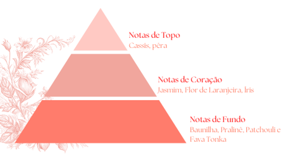 Notas de Fundo: Baunilha, Pralinê, Patchouli e Fava Tonka